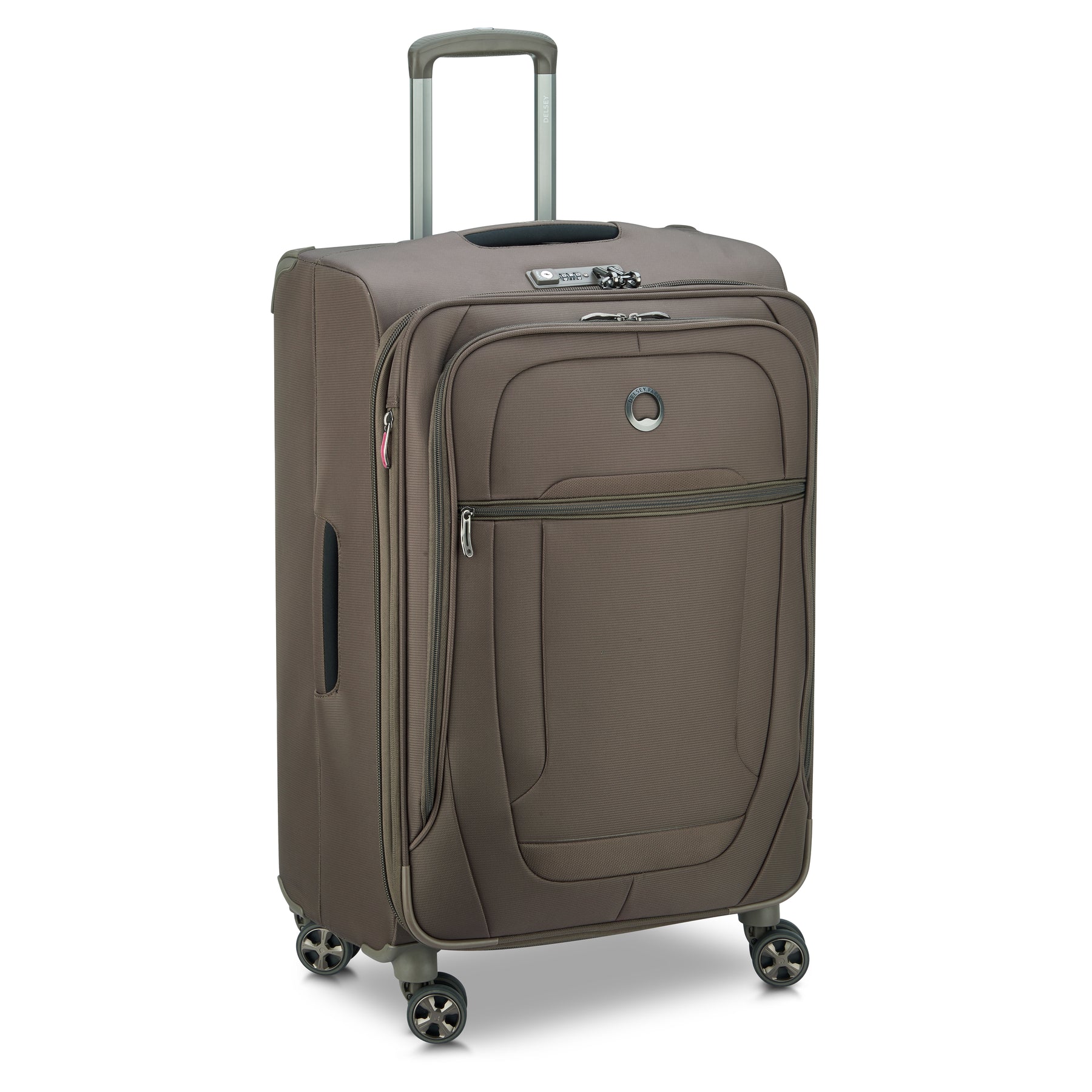 Delseyの実用的なソフトケース。拡張機能あり。大きなポケットがフロントにあり、傘などさっと使用したい物の収納もできて便利。ハンドルも、トップ、サイド、ボトムにあり、TSAコンビネーションロック、デルセーのジップセキュリテック2など嬉しい機能がたくさん。