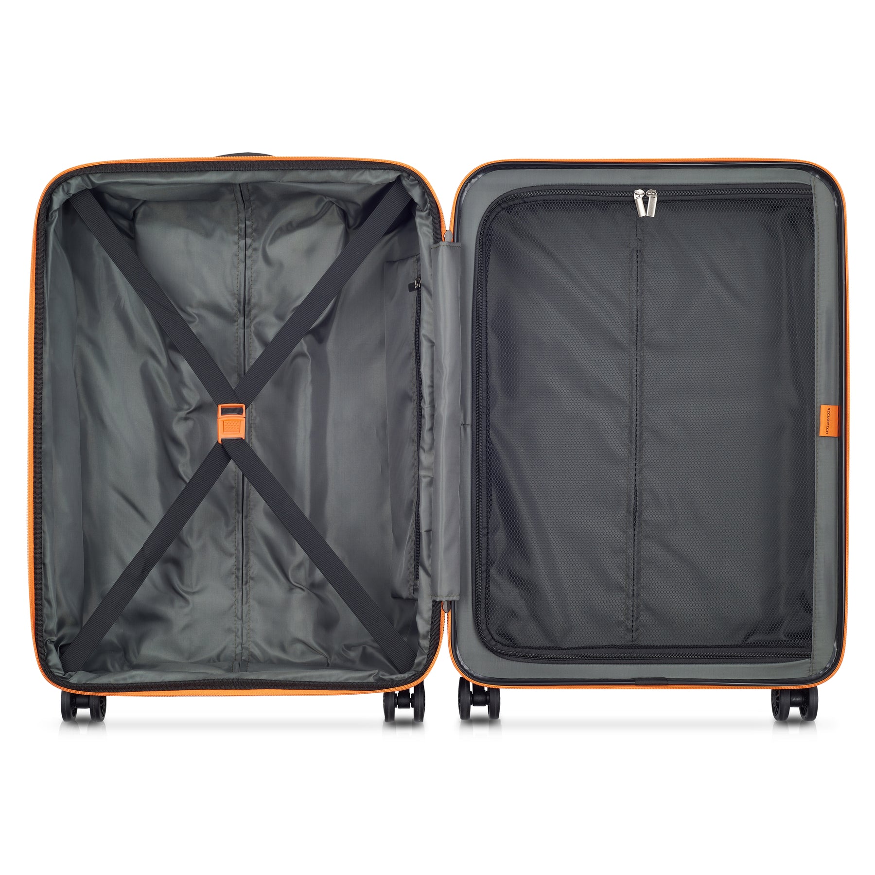 空港での荷物のターンテーブルで少し探しにくいのかなと思ったりしますが、オレンジのファスナーがアクセントで良い感じです。中はいたって普通。エクスパンドもあり、値段もリーズナブル。世界2位とか3位のシェアと書いているのですぐ壊れることはないだろうと期待しています。