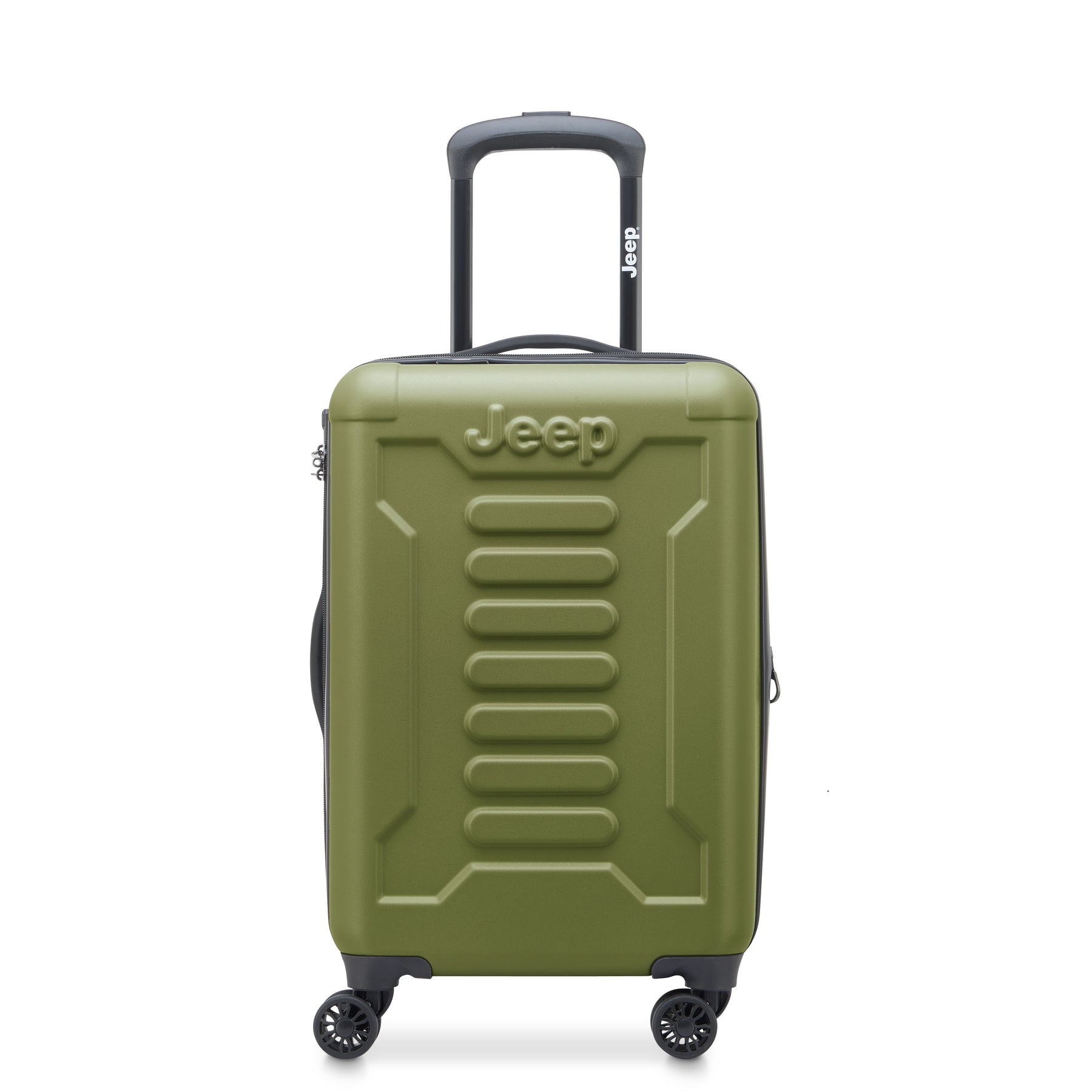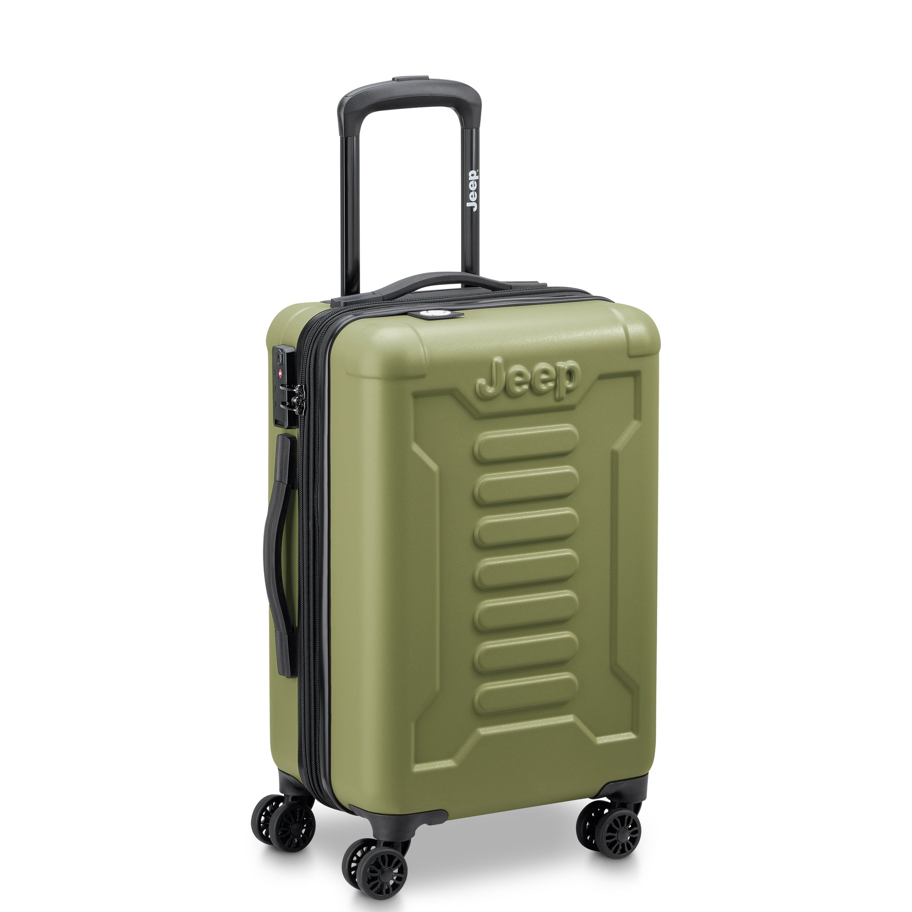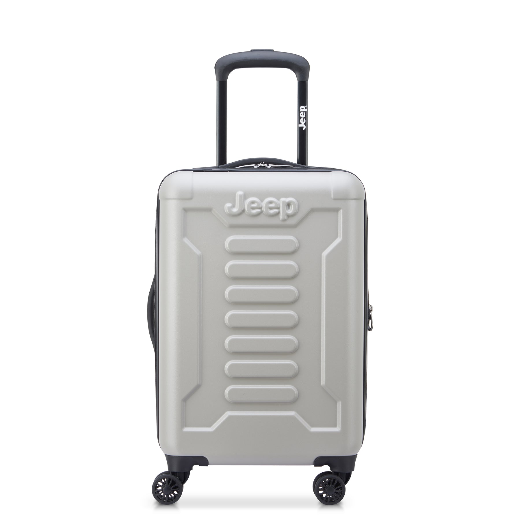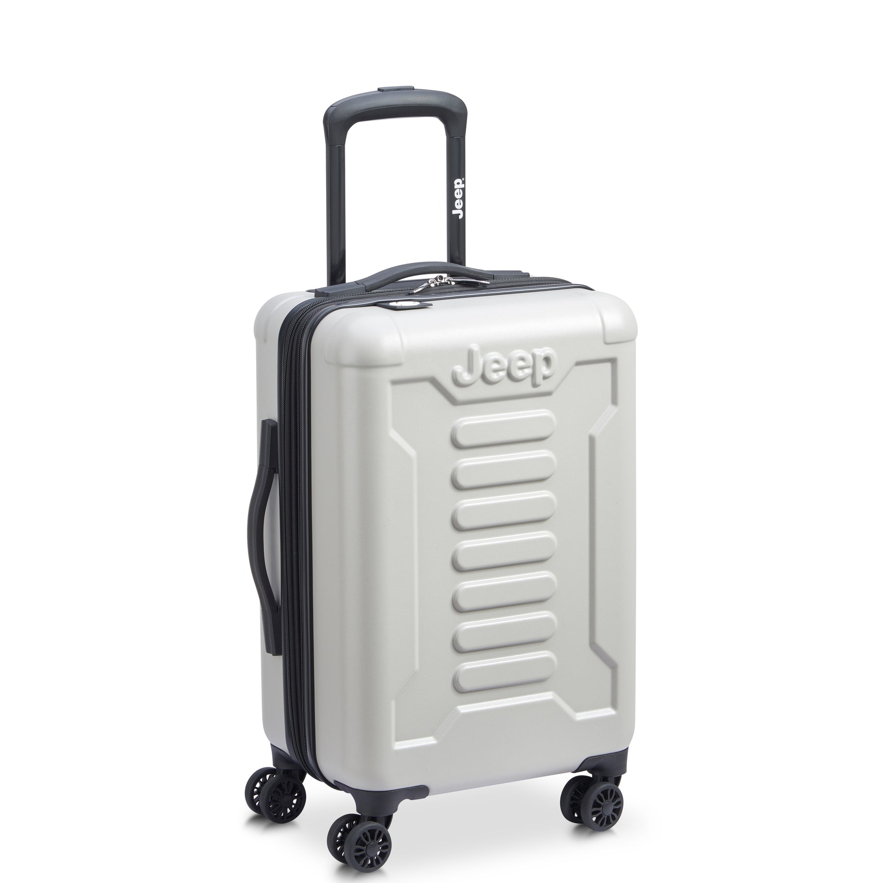 JEEP®ブランドのスーツケース。機内持ち込みサイズ。冒険心と自由の精神が詰め込んだアウトドア体験に特化したラゲージライン。トレイルテスト済みのダブルスピナーキャスター。傷に強いシェル仕上げ。拡張可能なコンパートメントにはタイダウンストラップとメッシュディバイダー付き。