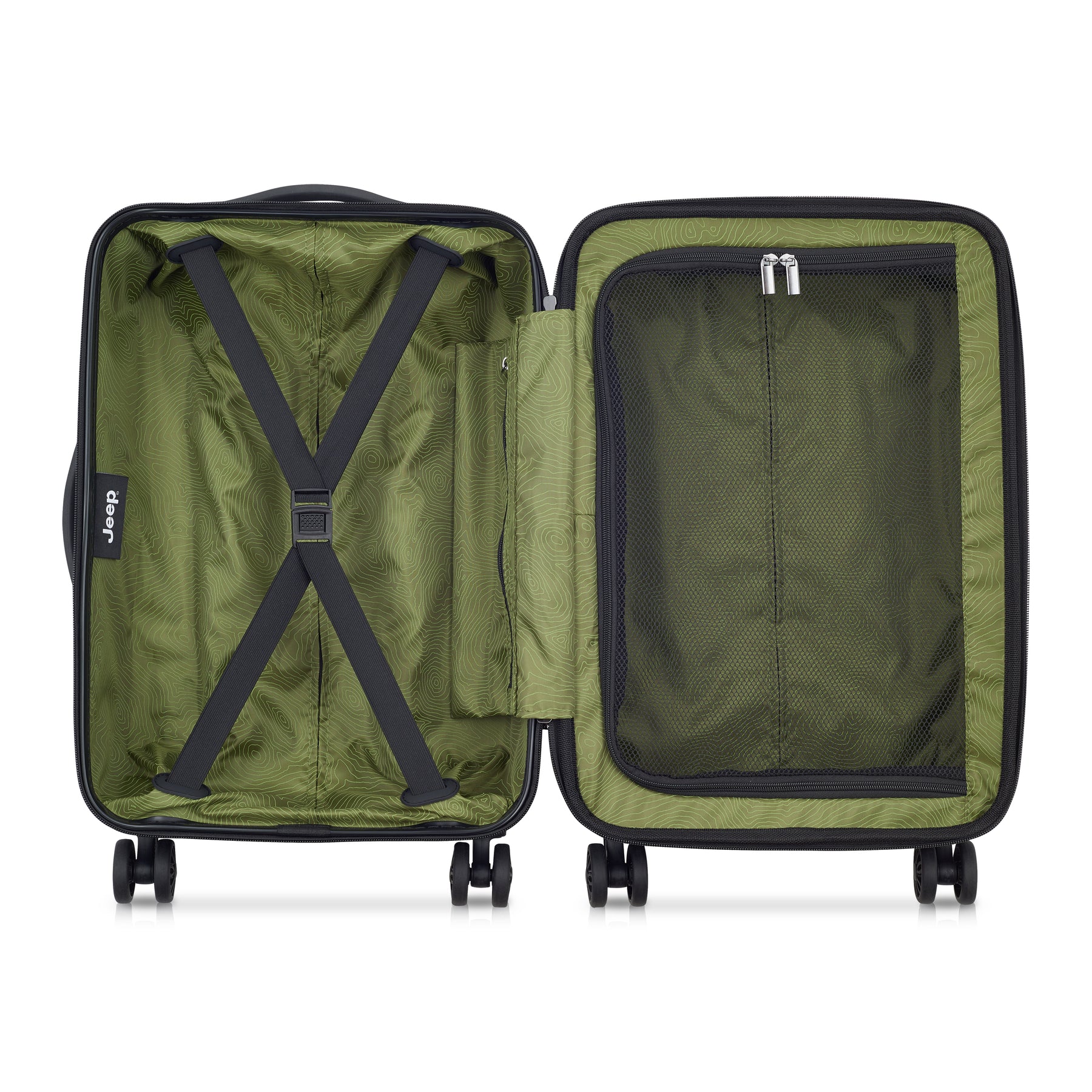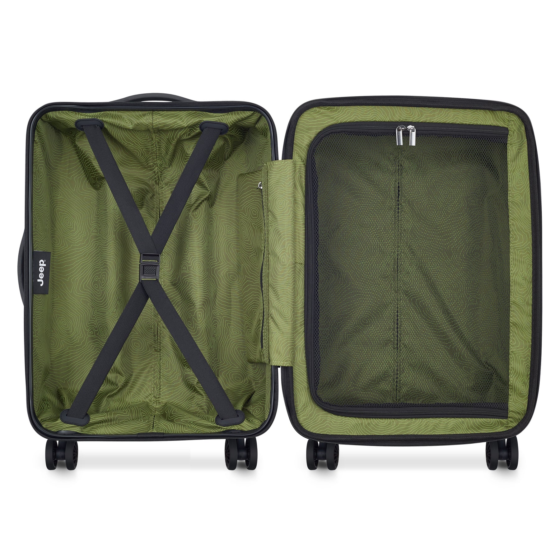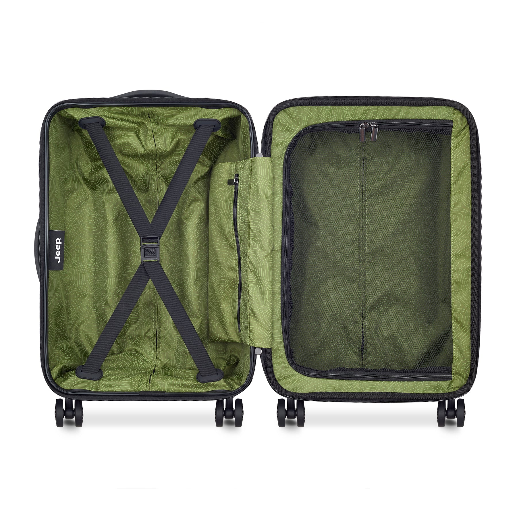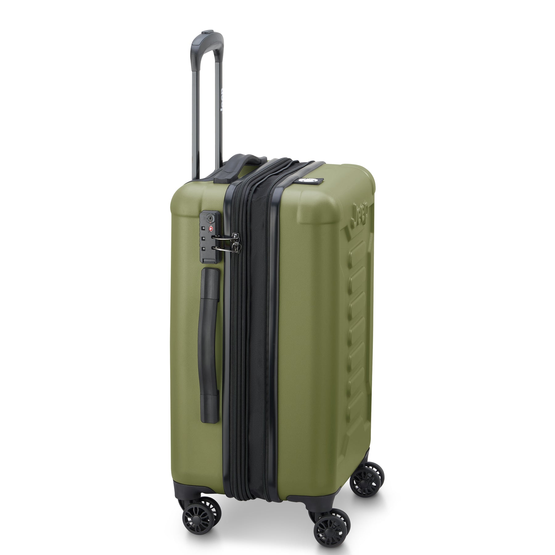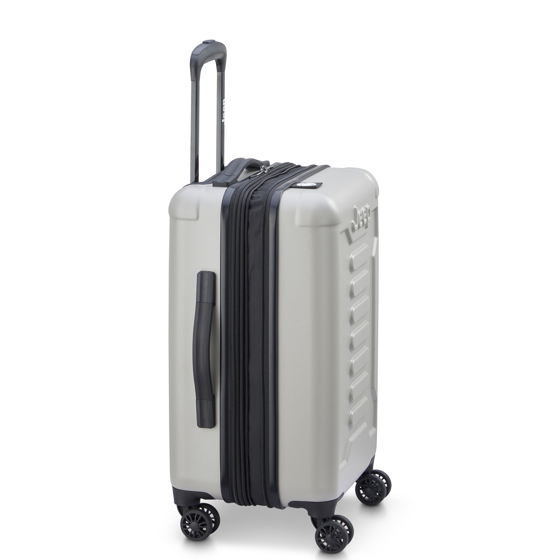 JEEP®ブランドのスーツケース。機内持ち込みサイズ。冒険心と自由の精神が詰め込んだアウトドア体験に特化したラゲージライン。トレイルテスト済みのダブルスピナーキャスター。傷に強いシェル仕上げ。拡張可能なコンパートメントにはタイダウンストラップとメッシュディバイダー付き。